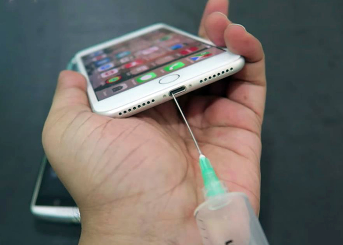 Пыль и грязь, которая постоянно попадает в разъемы смартфона из карманов, сумок и кошельков — довольно распространенная причина поломки аппарата. Поэтому время от времени, очищайте разъемы своего девайса с помощью шприца, заполненного воздухом.