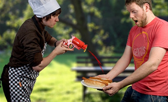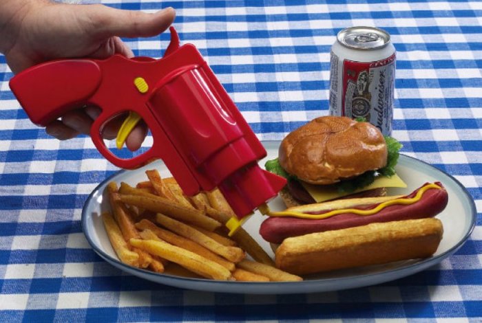 Этот творческий диспенсер для соуса выглядит как мультяшный пистолет. Он идеально подходит для тех, кто любит приправы, такие как кетчуп и горчица.