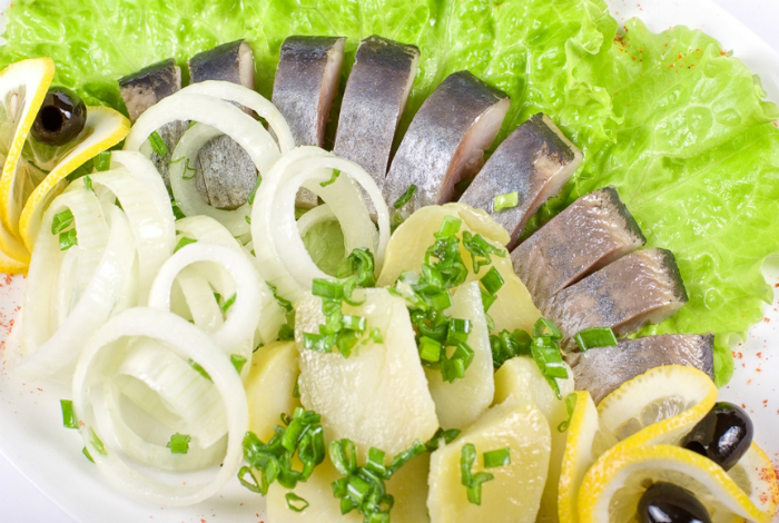 Малосольная селедка с луком.