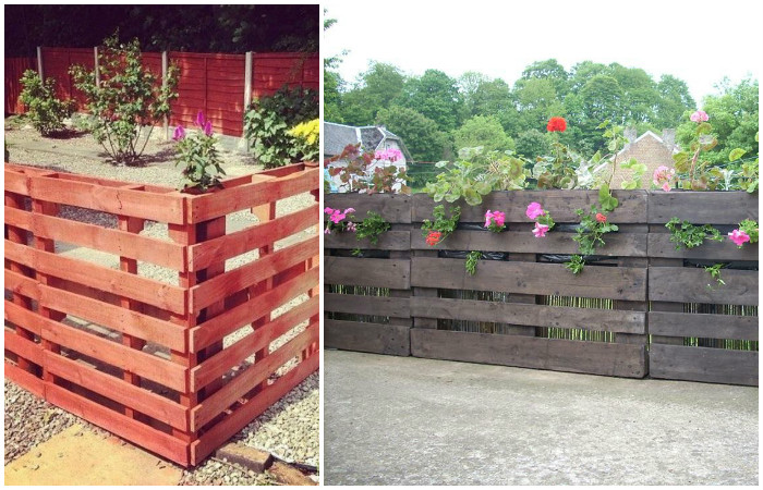 Использование палетов на даче: цветник