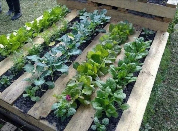 Положите палету на землю, и между ее горизонтальными перекладинами высадите растения. Так грядки будут выглядеть гораздо аккуратнее.