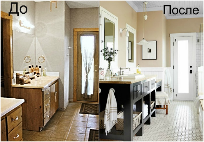 Косметический ремонт и замена старой мебели на стильные современные аналоги позволили освежить внешний вид санузла и привнести в интерьер нотки индивидуальности.