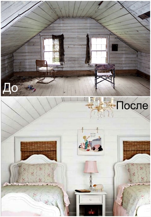Трансформация нежилой мансарды в светлую и просторную спальню для девочек.