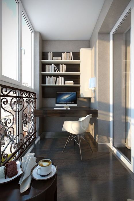 Тому, кто много работает, придется по вкусу оформление домашнего офиса на балконе.
