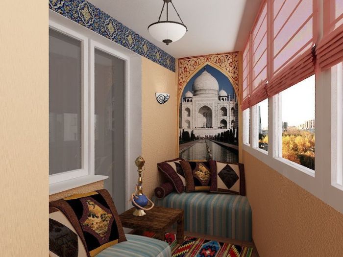 Интерьер лоджии в индийском стиле с панном Тадж-Махала.