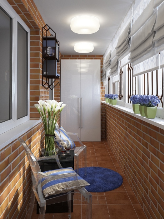 Плитка под кирпич будет достаточно хорошо смотреться в интерьере лоджии.