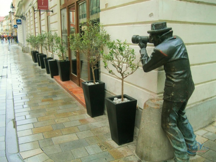 Если поздним вечером вы будете прогуливаться по улочкам Братиславы и внезапно обнаружите, что из-за угла ресторана за вами кто-то следит, не пугайтесь – это всего лишь памятник папарацци.