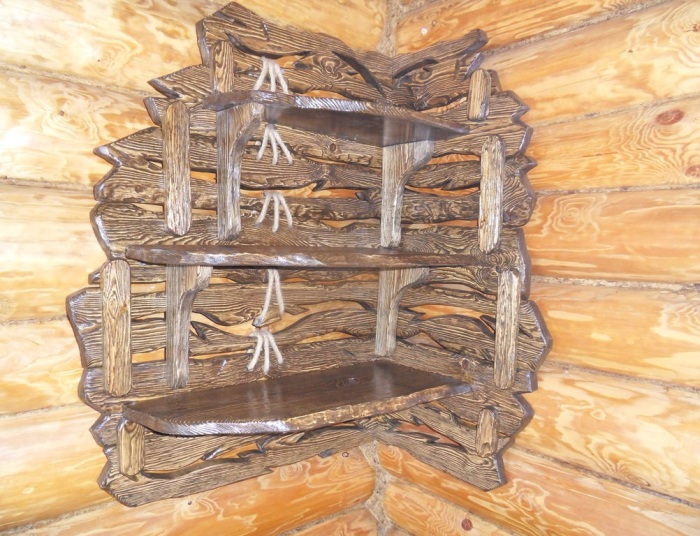 Полки из обработанных коряг могут быть достаточно универсальными и практичными.