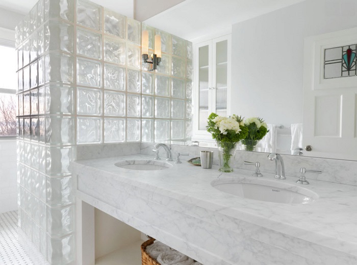 60-е возвращаются в моду. Особенно в дизайне интерьеров. Сегодня стало очень модным использовать в качестве отделочного материала стеклоблоки. Это уже не те однообразные материалы. Сегодня в магазинах можно найти множество вариантов не только в цветовой гамме, но и в фактуре: они могут быть гладкие, рельефные и матовые. Отделка ванной комнаты стеклоблоком – очень свежее решение, которое сможет преобразить любое помещение.