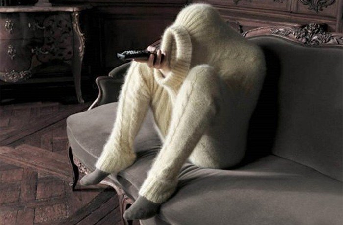 Вероятно, что эти свитера вязала самая заботливая бабушка в мире, которая очень заботилась о том, чтобы внучок не замёрз. Свитера получились со штанинами, и не понять – то ли это комбинезон, то ли свитер, то ли какой-то мутант. Но при всех странностях есть в этих свитерах что-то притягательное. А если учесть, что греют они просто превосходно, можно не сомневаться, что российские домоседы эту модель оценят.