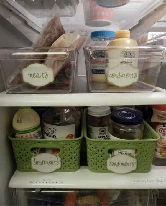 1. Чтобы не искать продукты в самых глубинах холодильника, группируйте их в отдельные контейнеры с подписью