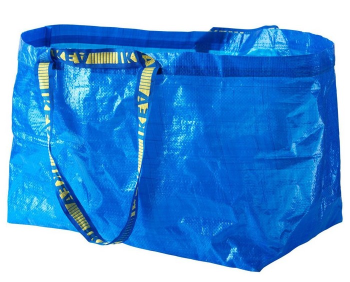 Кстати, у однодолларовой сумки из IKEA тоже есть имя – Frakta. Своей яркой внешностью и популярностью она обязана «родителям» – Марианне и Кнуту Хагберг. Они пришли к выводу, что большая сумка из плотного и непромокаемого синтетического полипропилена станет универсальным помощником в любых хозяйственных делах: от сбора мусора до переезда.