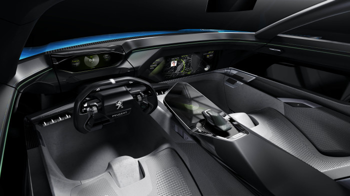 Автономные режимы разделены аналогично. Первая версия — Autonomous Sharp разработана для того, чтобы найти самый быстрый маршрут и максимально быстро добраться до пункта назначения. Второй автономный режим — Autonomous Soft предназначен, чтобы сделать длительное путешествие расслабляющим. Peugeot предполагает, что в этом режиме водитель сможет посмотреть фильм или почитать книгу. И, конечно же стоит отметить то, что поскольку автомобиль предлагает как автономный, так и обычный режим вождения, его интерьер отличается причудливыми выдвигающимися рулем и педалями.