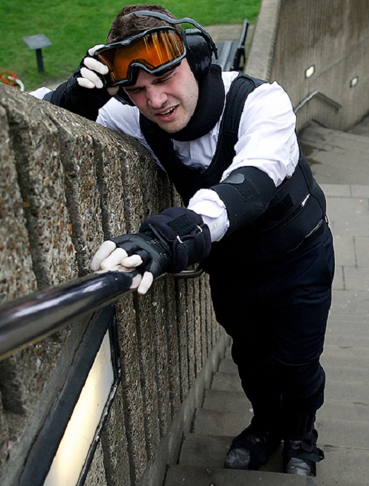 Костюм, позволяющий понять, как чувствуют себя инвалиды. | Фото: img.thesun.co.uk.