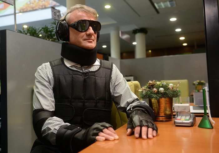 На днях одно из отделений Сбербанка России посетил глава банка Герман Греф. Председатель правления решил взять кредит, но не совсем обычным способом. Все внимание присутствующих было приковано к его внешнему виду. Господин Греф был одет в специальный костюм симуляции возраста. В нем глава банка попытался ощутить на себе все неудобства, которые испытывают люди с ограниченными возможностями.