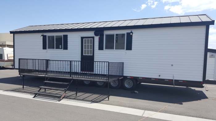О технических характеристиках дома и его функционале стоит знать следующее. Трейлер является буксируемым и стоит на мощной колесной базе с 4 осями и 8 колесами. Внутри трейлера есть резервуары для пресной воды, которая используется в душевой и на кухне, несколько резервных аккумуляторов, свой собственный электрогенератор и специальные отделения для газовых баллонов. К дому можно также подвести некоторые коммуникации.