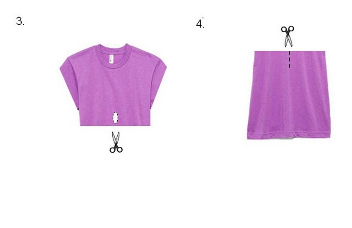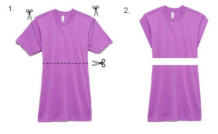 Обрежьте рукава (тут кому как нравится), а саму футболку разрежьте пополам.